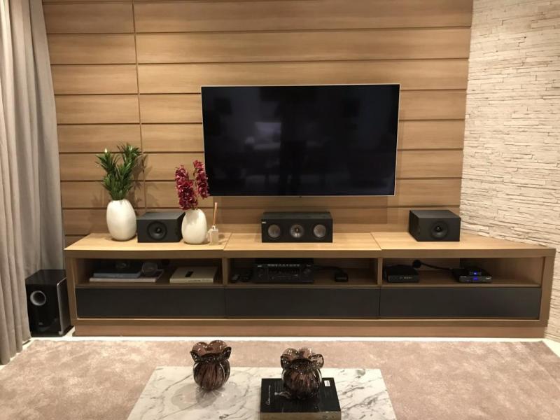 Com o sistema de som ambiente o consumidor desfruta da melhor qualidade de som. E vai ao critério do cliente escolher na opção de um sistema de som 5.2 (com três caixas centrais mais duas laterais e um subwoofer para dar aquele efeito grave, seria perto do sofá para dar o efeito cinema), o sistema de som 7.2 (com três caixas de som centrais alinhando com a sua televisão e rack e mais quatro caixas...